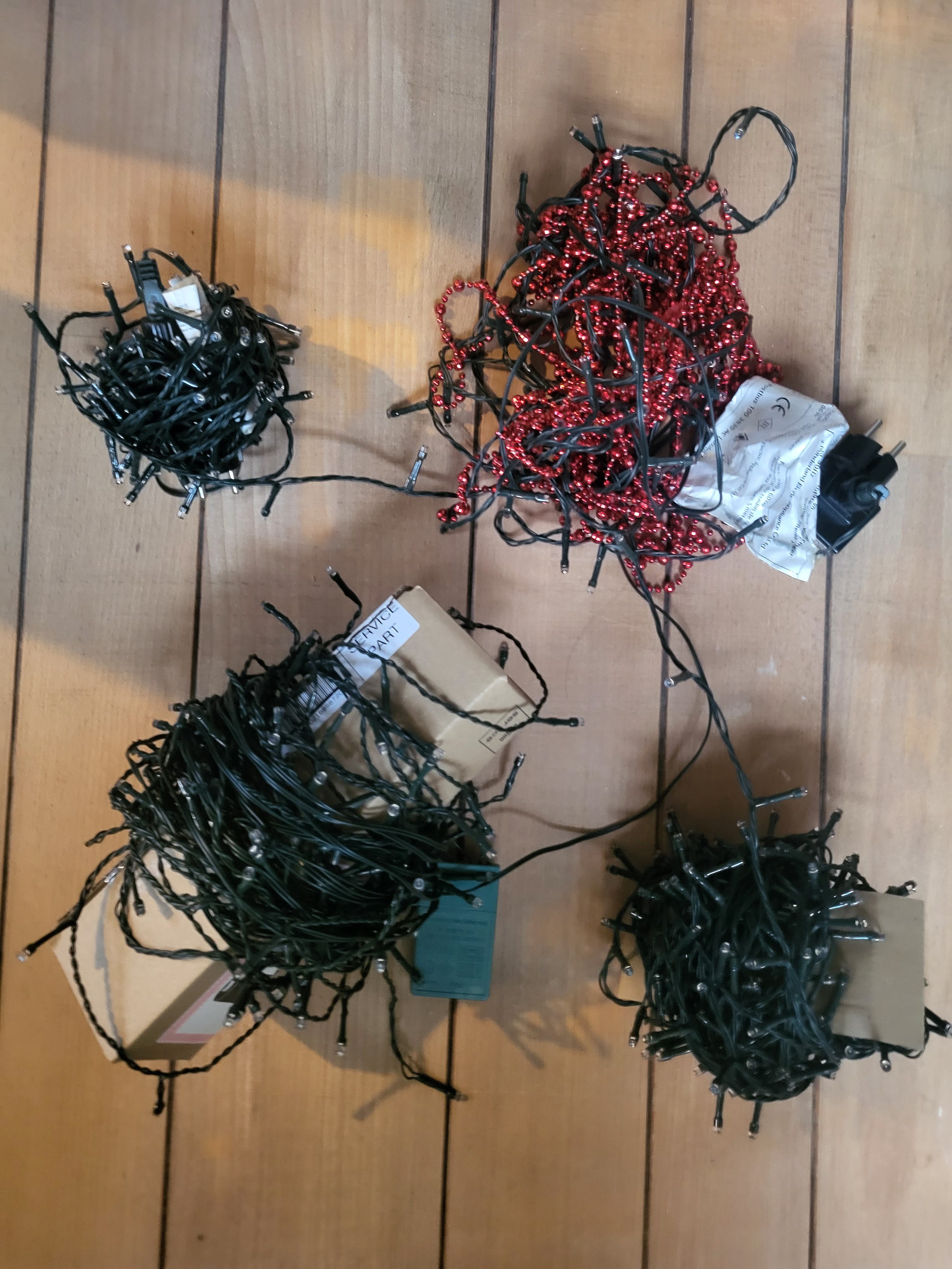 When I took down my Christmas tree after Epiphany, the lights were in their usual state of great entanglement. Three sets of lights, from short to long and longer completely amassed into each other with beginnings and endings lost somewhere in the mess. One set of lights has one horizontal cable with vertical strands of different lengths, like icicles dropping down. This one was particularly difficult to unwind as all the various lengths kept getting intertwined again and again. I only have two hands, so at some point I called two of my sons to help. Having wound the lights artistically around the tree, in a style I thought was going to make it easy to take them down, I was (as I am every year) frustrated.