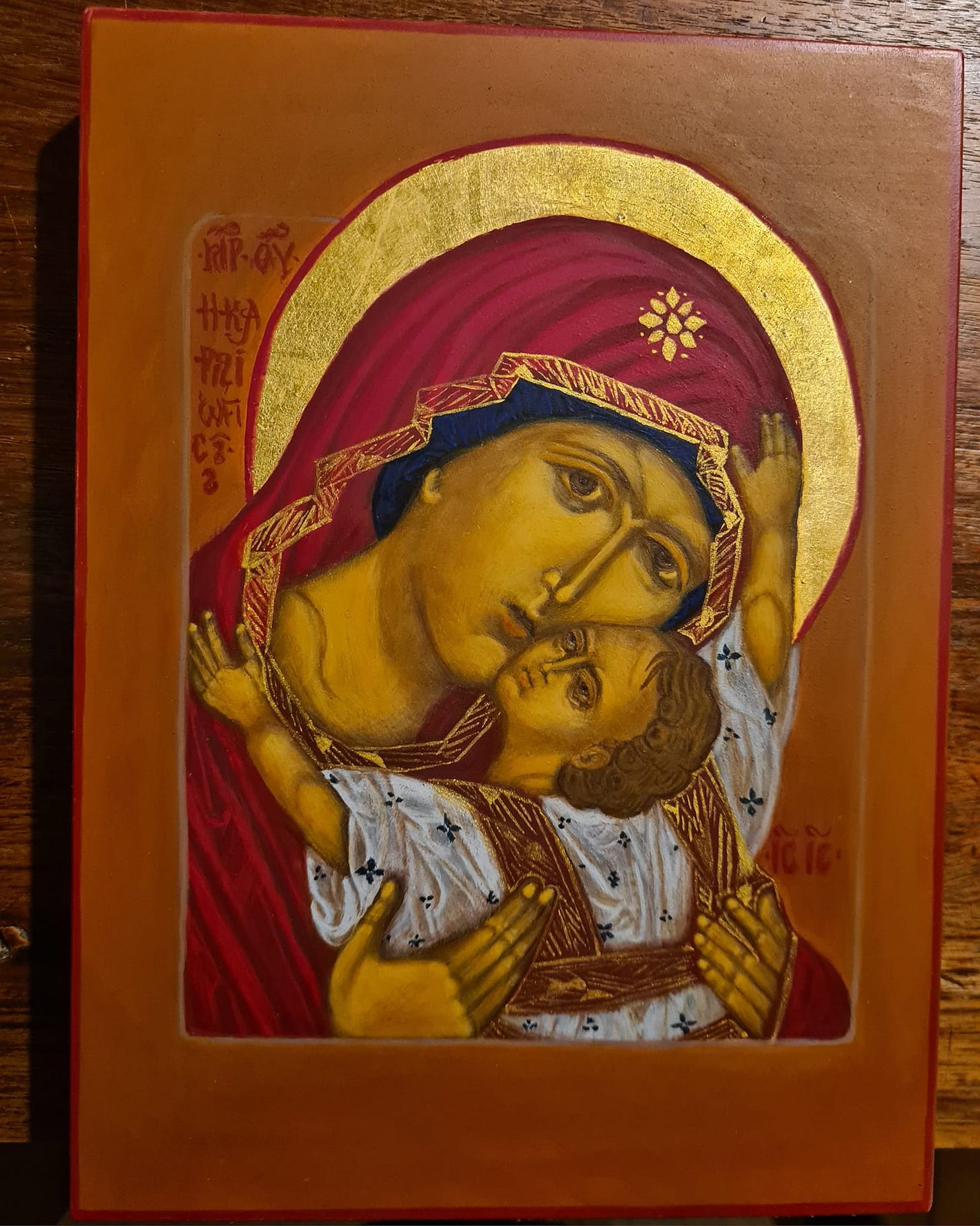 When I am painting icons I am brought to a space of deep contemplation. I contemplate not only the effect of a particular pigment on the board, and the precise way to hold the brush, but also the face of the divinity which is slowly appearing before me.